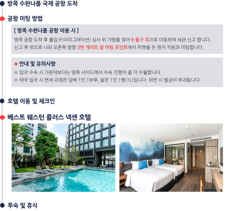 ■ 미팅샌딩비 (4인이상 출발/1인당/$60) (4인 미만시 총 $240 현지지불 해주십시오) ■ 캐디피(18홀/1인/400~500바트) & 캐디팁(18홀/1인/400~500바트) ■ 전일정 석식 ※ 골프장 상세 캐디피 / 캐디팁 안내 - 캐디피 : 시암CC 500바트 / 람차방CC 450바트 / 이 외 나머지 골프장 400바트 - 캐디팁 : 시암CC 500바트 / 이 외 나머지 골프장 400바트 ※ 본 상품은 호텔에 한국인 직원이 상주하여 골프장-호텔 이동간 안내를 드립니다 |