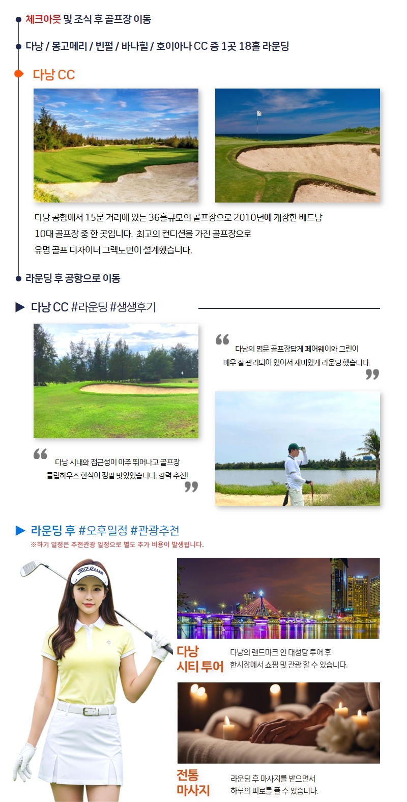 | 4일차 | 다낭 | 전용차량 | 전일 | ||||